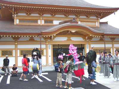上の写真は「宝光寺」。ここから祈祷獅子が出発する。宝光寺は最近改築して、黄金色の大きな寺になった。それまでの宝光寺は、