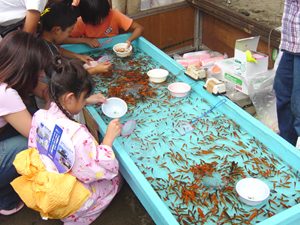 お祭り2日目、曇天の空模様。時折激しい雨が降るため、客足は少し鈍い。