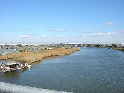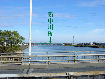 写真は、潮止橋から見た「新中川橋」。潮止橋より1.5キロほど上流に「新中川橋」がある。
