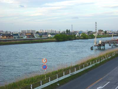 朝方に撮影した。地元埼玉県八潮市、潮止橋に架かる歩道橋の上から、「東京スカイツリー」を望む。