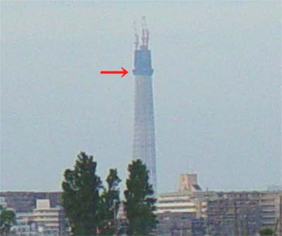 上の写真は4ヶ月前、1月10日に撮影した。この時「東京スカイツリー」は264メートルだった。