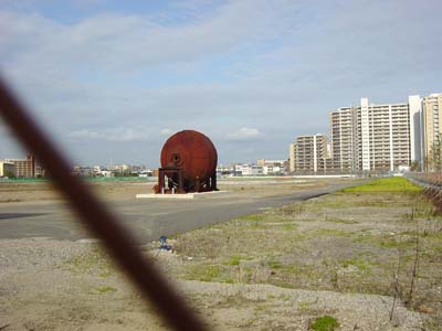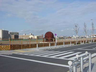 地球釜が近くに見える場所に来た。三菱製紙中川工場跡の中を突っ切る新しい道路が出来たので、地球釜のすぐ近くまで来ることが出来た。