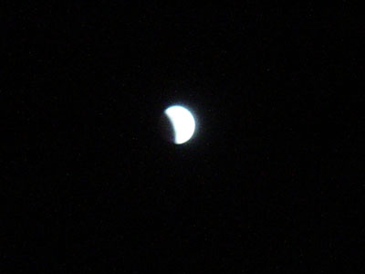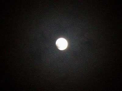 9時45分、月が左から欠け始めた。薄雲がかかってきたので心配だったが、それでも欠けるのはよく見えた。