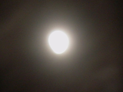こちらは夜景モードでの撮影。明るく写っているのはいいけど、明るすぎて月の輪郭線がボヤけて、欠け具合が判りづらい。