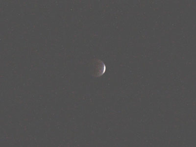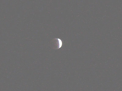 夜11時、月はさらに細くなり、ダイヤモンドリング上体に見える。